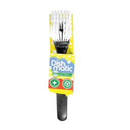 De afwasborstel heeft met de nieuwe zwarte kleur een moderne uitstraling gekregen. De afwasborstel is van 99% gerecycled plastic en 100% recycleerbaar. Bovenal hebben de borstelharen een unieke antibacteriële werking om de groei van bacteriën tegen te gaan. De producten van de Dishmatic-ECO range zijn op elkaar afgestemd. De verschillende borstelkoppen zijn onderling verwisselbaar en kunnen telkens weer vervangen worden zodra de oude versleten is.